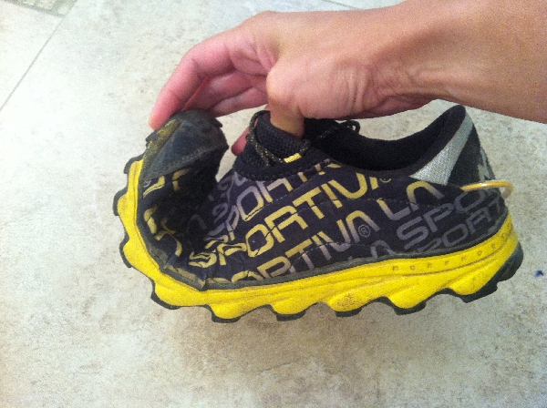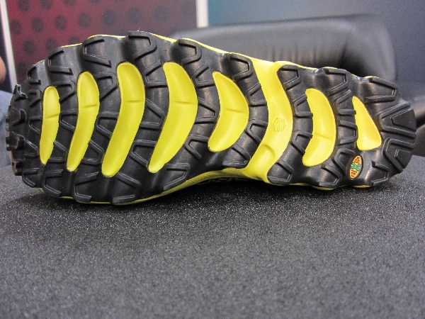 Dès la sortie de la boite, on peut s'apercevoir de l'extrême légèreté (ma paire de 43 fait moins de 200g) et de la souplesse de cette chaussure.