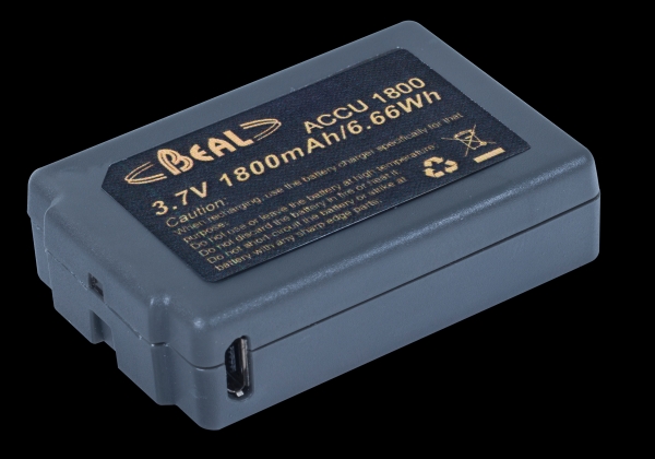 La Lampe Frontale Beal Lighting FF210 R est rechargeable via sa batterie Lithium-Ion 1800 mAh (fournie) ou avec trois piles AAA (non incluses).